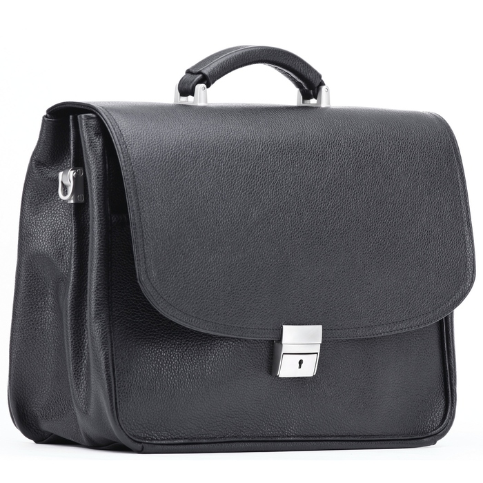 Портфель мужской на клапане, 1 отд, пл/ремень, н/кожа, чёрный (ка33076-71)