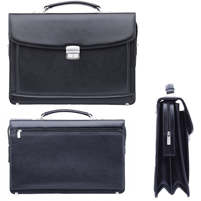 Портфель мужской на клапане, (ка33025-71), 2 отделения, натуральная кожа, цвет чёрный
