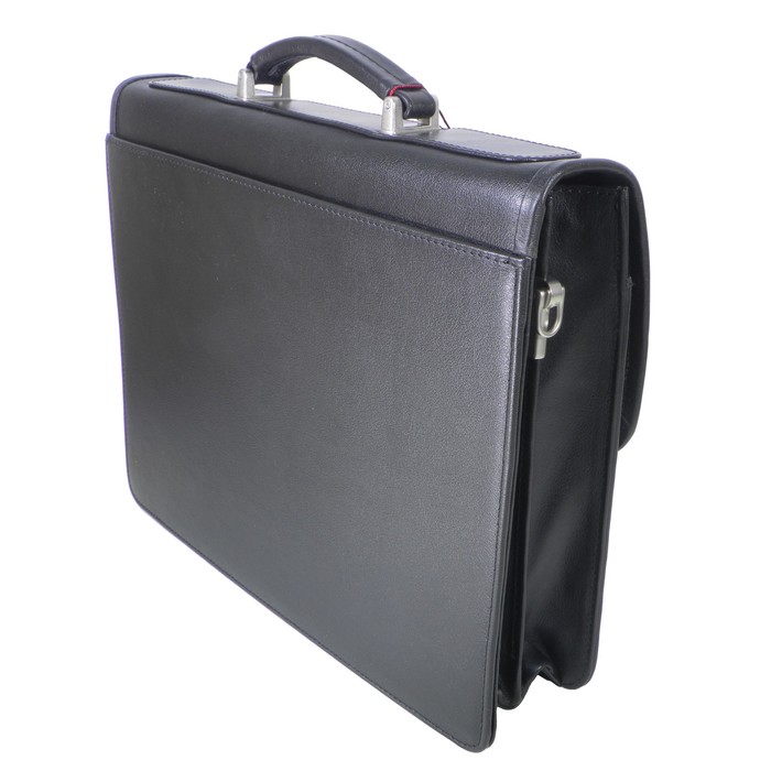 Портфель мужской на клапане, (ка33037-71), 2 отделения, натуральная кожа, цвет чёрный