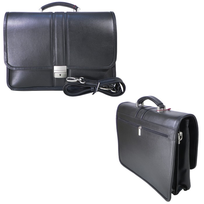 Портфель мужской на клапане, (ка33043-71), 2 отделения, натуральная кожа, цвет чёрный