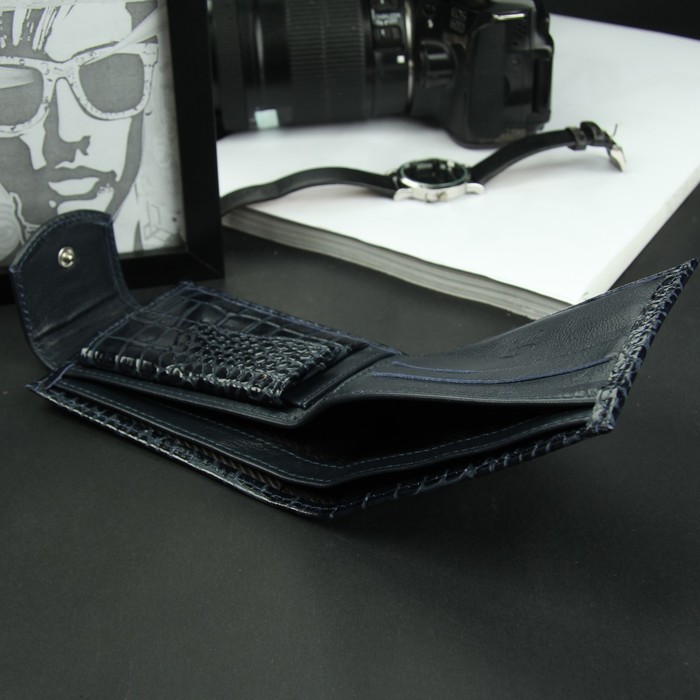Портмоне, 2 отдела, для карт, для монет, крокодил, цвет синий