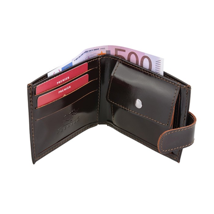 Портмоне мужское, 1 отдел, для купюр, монет, карт, цвет коричневый