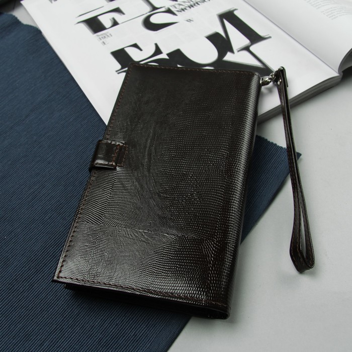 Портмоне мужское, 1 отдел на кнопке, отдел для монет, коричневый игуана