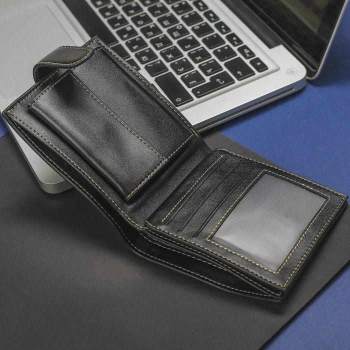 Портмоне мужское, 2 отдела, для карт, для монет, цвет чёрный