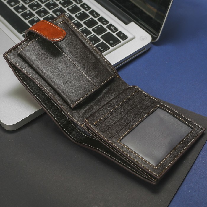 Портмоне мужское, 2 отдела, для карт, для монет, цвет кофе