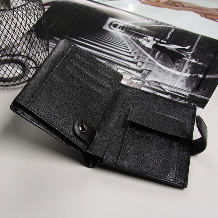 Портмоне мужское 2 в 1(авто), 2 отдела, для карт, для монет, цвет чёрный
