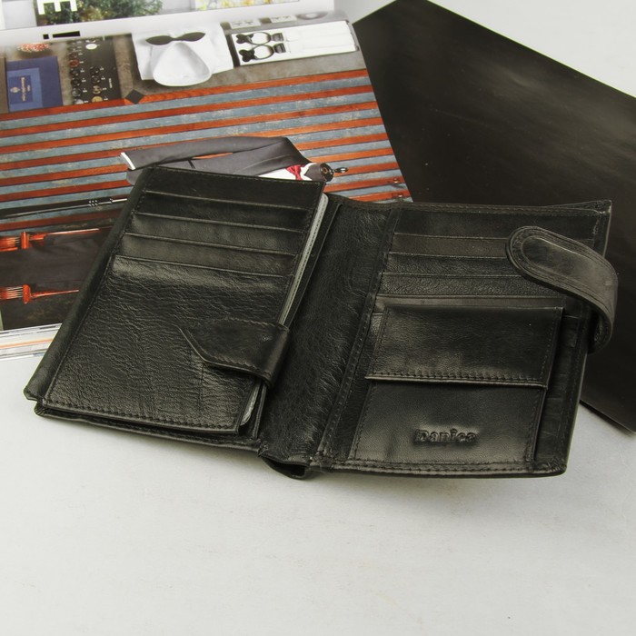 Портмоне мужское 2 в 1 (авто), 2 отдела, для карт, для монет, наружный карман, цвет чёрный
