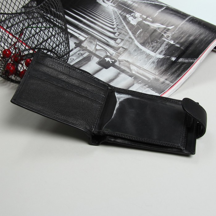 Портмоне мужское, 3 отдела, для карт, для монет, цвет чёрный