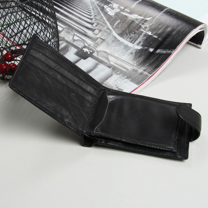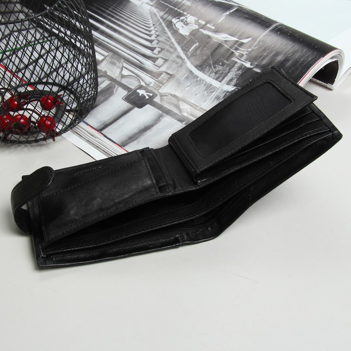 Портмоне мужское, 3 отдела, для карт, для монет, цвет чёрный