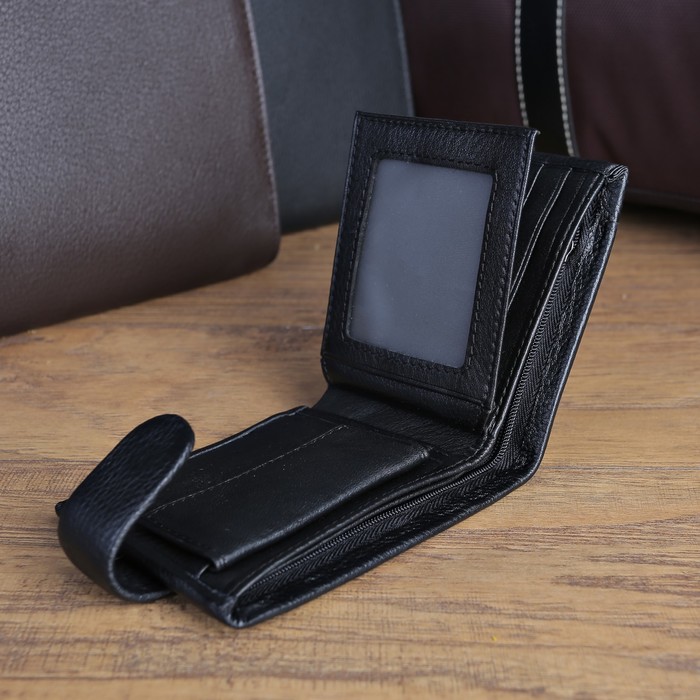 Портмоне мужское, 3 отдела, для карт, для монет, цвет чёрный