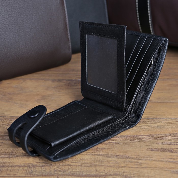 Портмоне мужское, 3 отдела, для карт, для монет, цвет чёрный