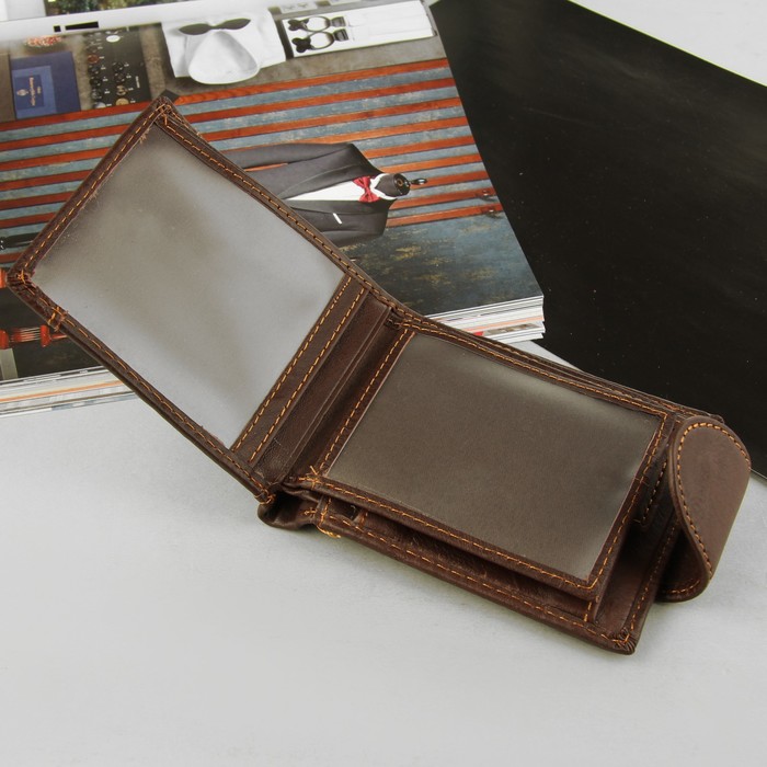 Портмоне мужское, 3 отдела, для карт, для монет, цвет коричневый