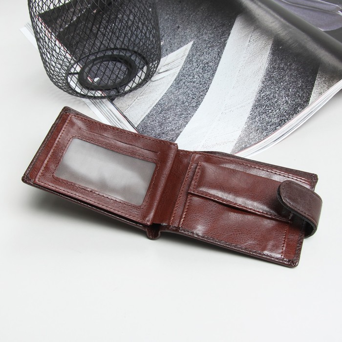Портмоне мужское, 3 отдела, для карт, для монет, цвет коричневый