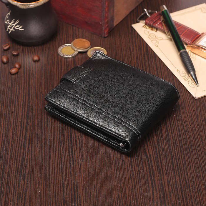 Портмоне мужское, 3 отдела, для карт, для монет, на кнопке, цвет чёрный