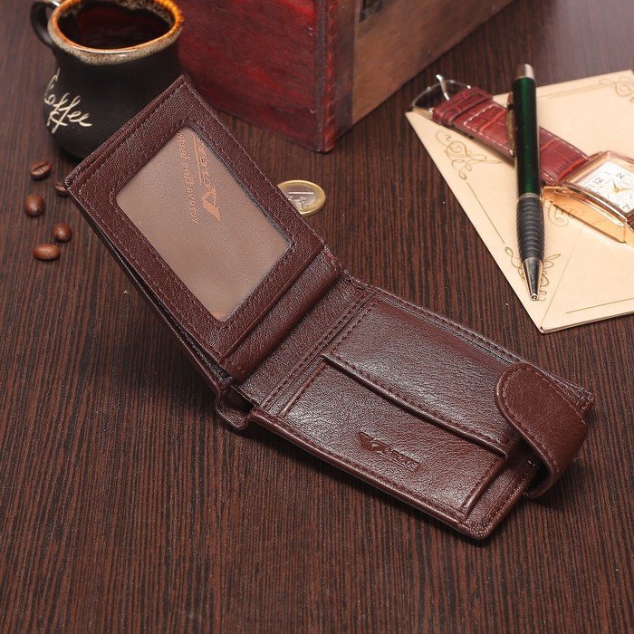 Портмоне мужское, 3 отдела, для карт, для монет, на кнопке, цвет коричневый