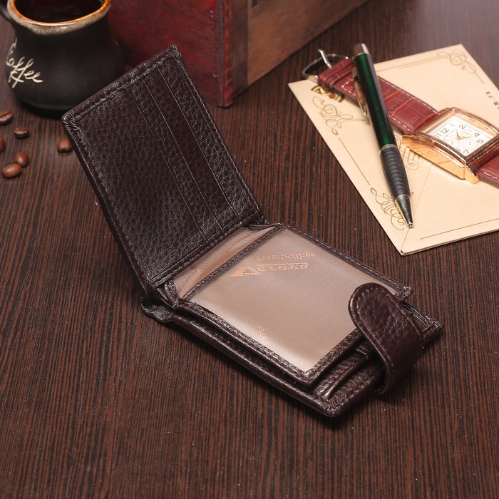 Портмоне мужское, 3 отдела, для карт, для монет, на кнопке, цвет коричневый