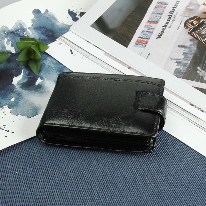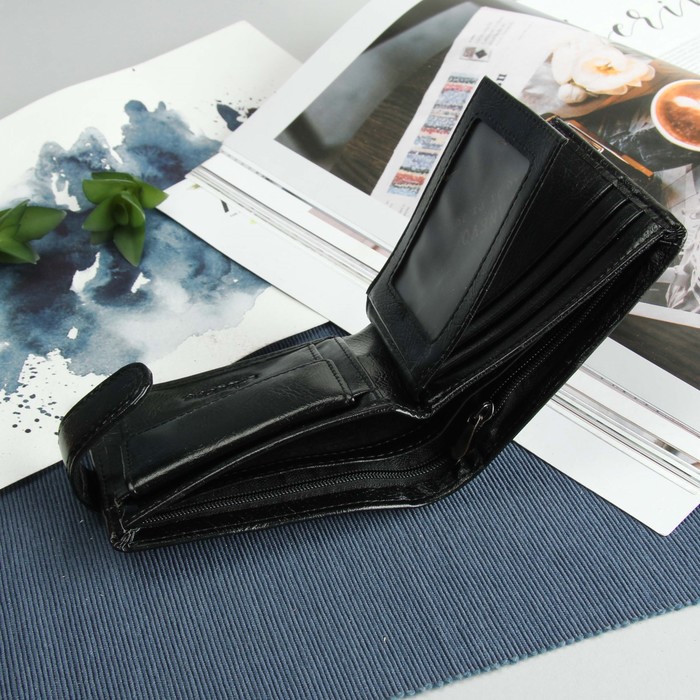 Портмоне мужское, 3 отдела, для карт, для удостоверений, для монет, цвет чёрный