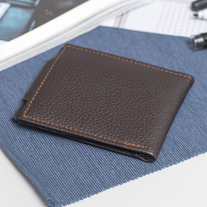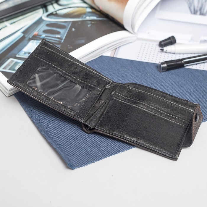 Портмоне мужское, 3 отдела, для карт, на кнопке, цвет кофе