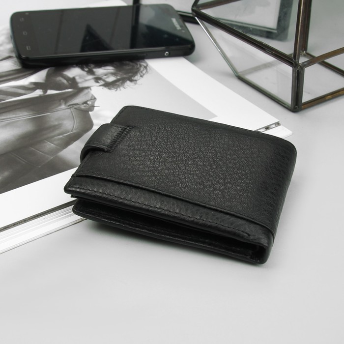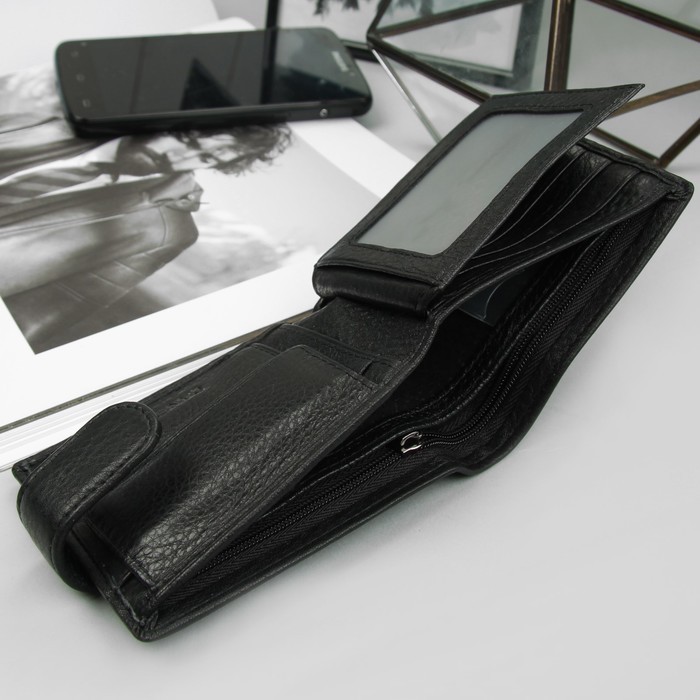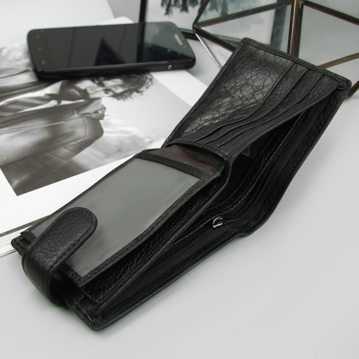 Портмоне мужское, 3 отделения, для карт, для удостоверения, для монет, чёрный
