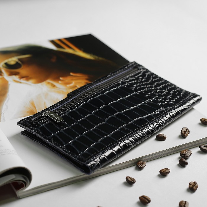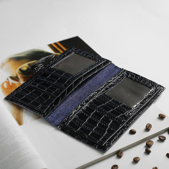 Портмоне мужское, 4 отделения, для карт, для монет, крокодил тёмно-синий