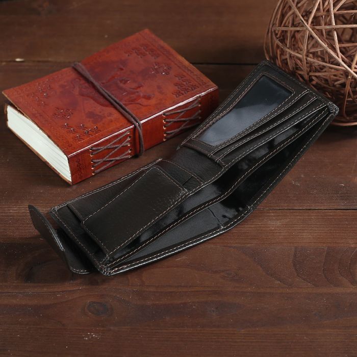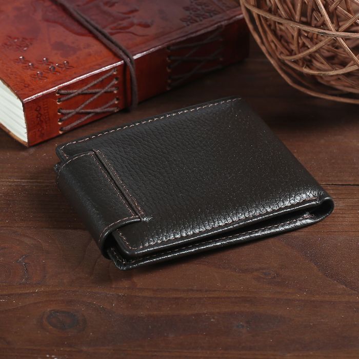 Портмоне на кнопке, 2 отдела, для карт, монет, флотер, цвет коричневый