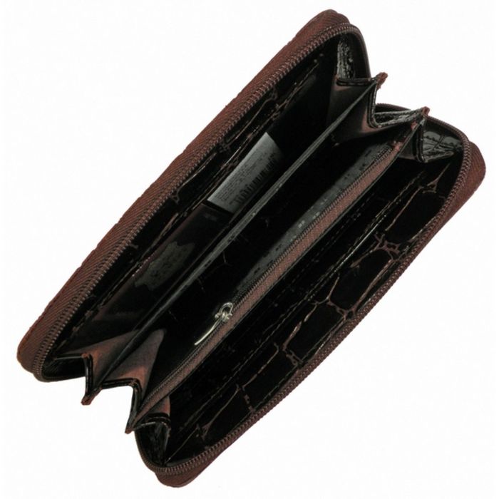 Портмоне женское на молнии, 3 отдела для купюр, для монет, для кредитных карт, цвет тёмно-коричневый