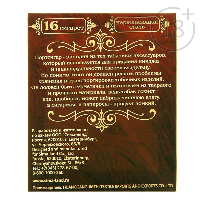 Портсигар изготовлен из прочного металла, поэтому будет радовать вас долго. Сигареты надёжно закрепляются внутри зажимом.