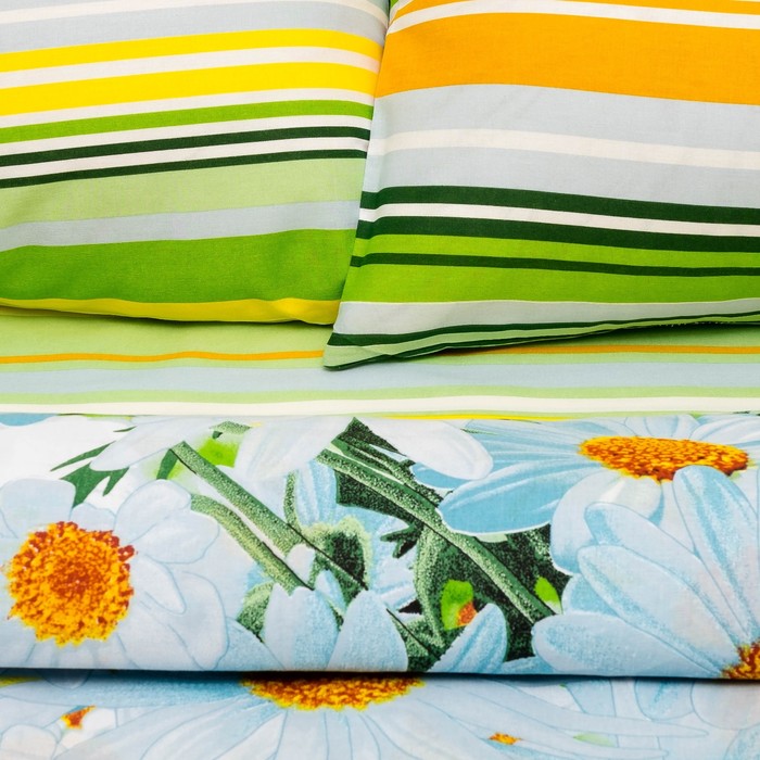 Постельное бельё 1,5 сп "Василиса: Ромашковый вальс", 215х145см, 214х150см, 70х70см - 2 шт