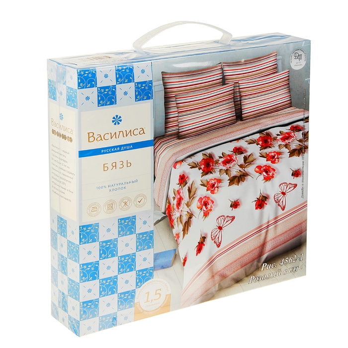 Постельное бельё 1,5сп Василиса «Розовый вальс», 215х145см, 214х150см, 70х70см - 2 шт