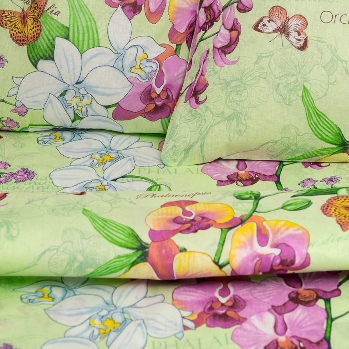 Постельное бельё 2 сп. Цветущая орхидея бежевая 180х215, 175х215, 70х70 2шт бязь 105г/м хл100%