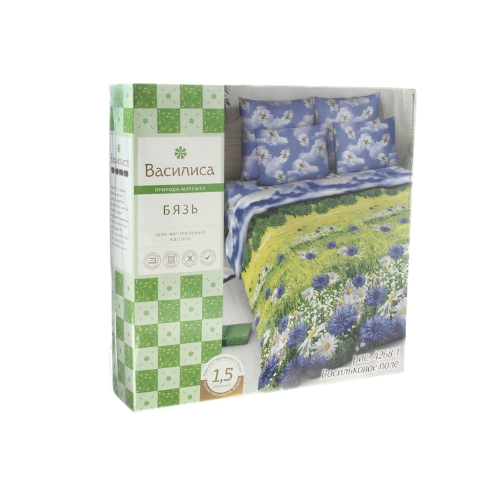Постельное бельё 2 сп "Василиса: Васильковое поле", 215х175см, 220х200см, 70х70см - 2 шт