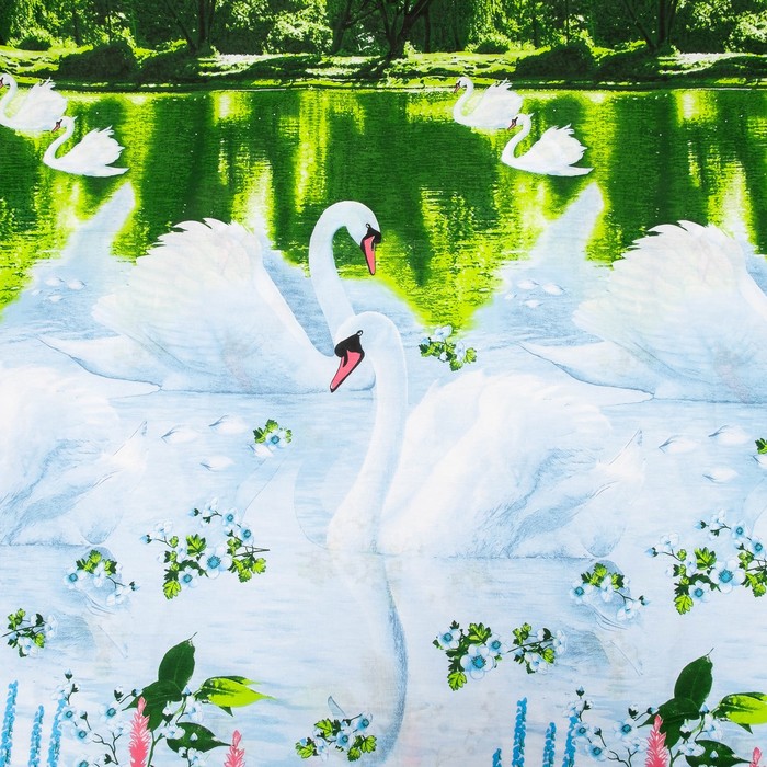 Постельное бельё 2сп Василиса «Белые лебеди», 215х175см, 220х200см, 70х70см - 2 шт