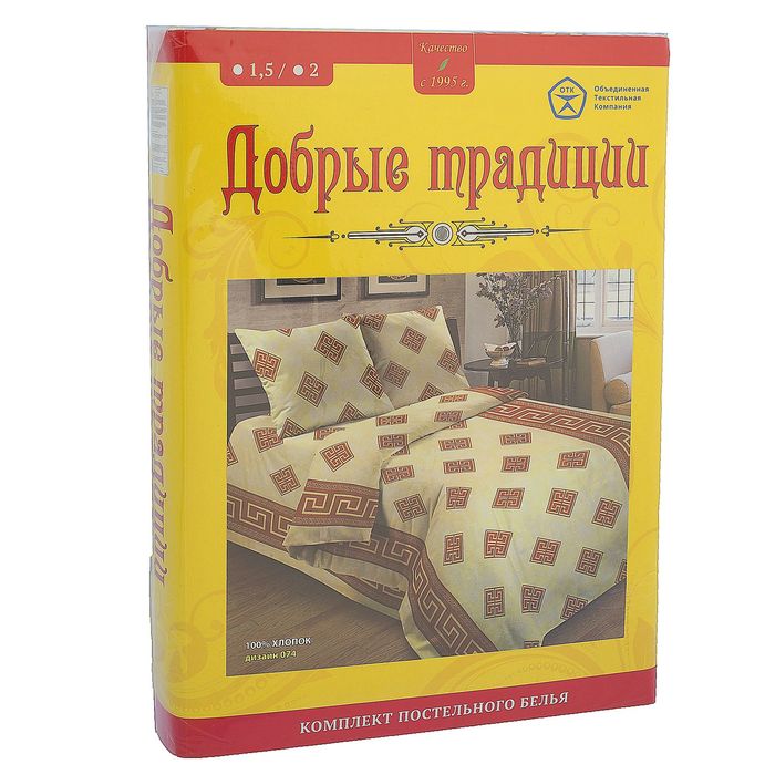 Постельное бельё "Добрые традиции" 1,5 сп., рис. 74, 150х215, 145х215, 70х70 - 2шт., бязь 105 г/м2