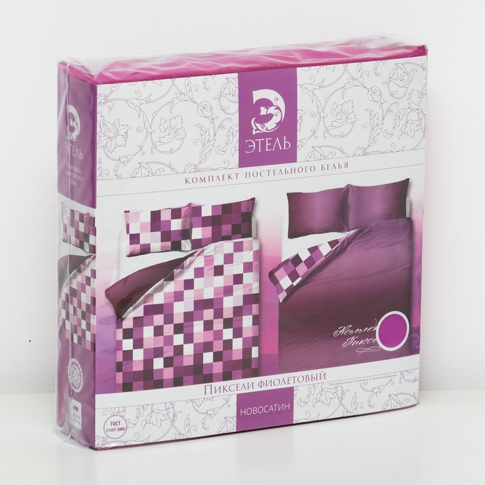 Постельное бельё "Этель" 2 сп. Пиксели (фиолетовый) 180х210 см, 220х240 см, 50х70 ± 3 см - 2 шт., новосатин