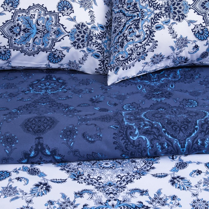 Постельное бельё "Этель" 2 сп. Синий кач 180х210 см, 220х240 см, 50х70 ± 3 см - 2 шт., новосатин