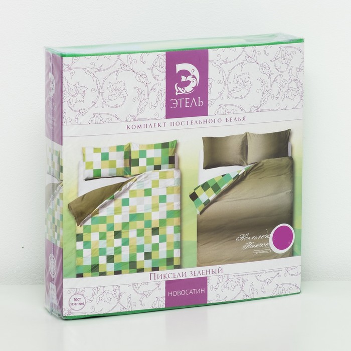 Постельное бельё "Этель" дуэт Пиксели (зелёный) 150х210 см - 2 шт, 220х240 см, 50х70 ± 3 см - 2 шт., новосатин