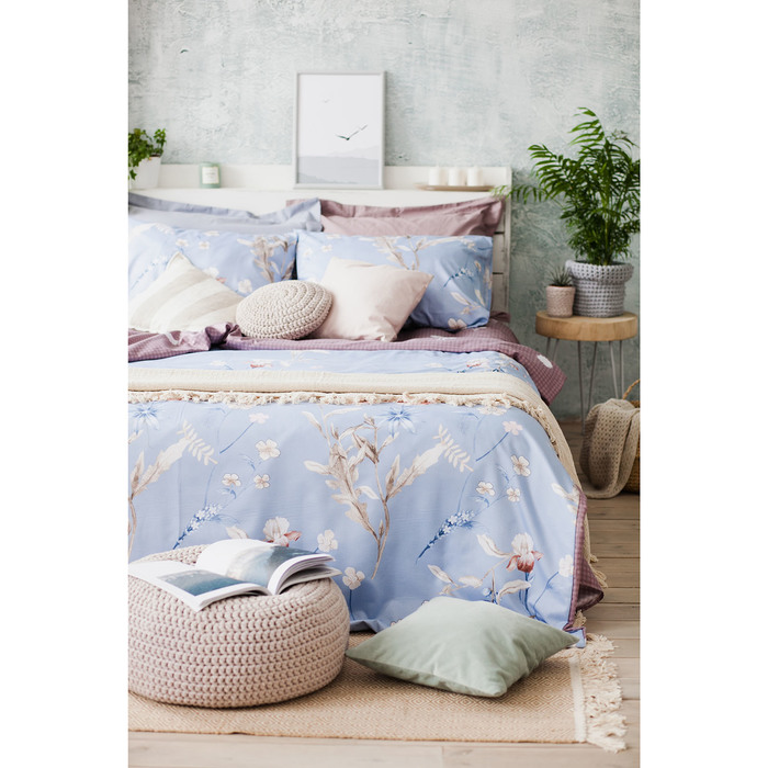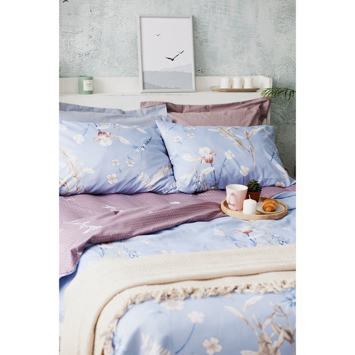 Постельное бельё "Этель" евро Ароматный голубой 200х220 см, 220х240 см, 50х70 ± 3 см - 2 шт., новосатин