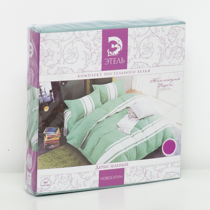 Постельное бельё "Этель" евро Дерби (зелёный) 200х220 см, 220х240 см, 50х70 ± 3 см - 2 шт., новосатин