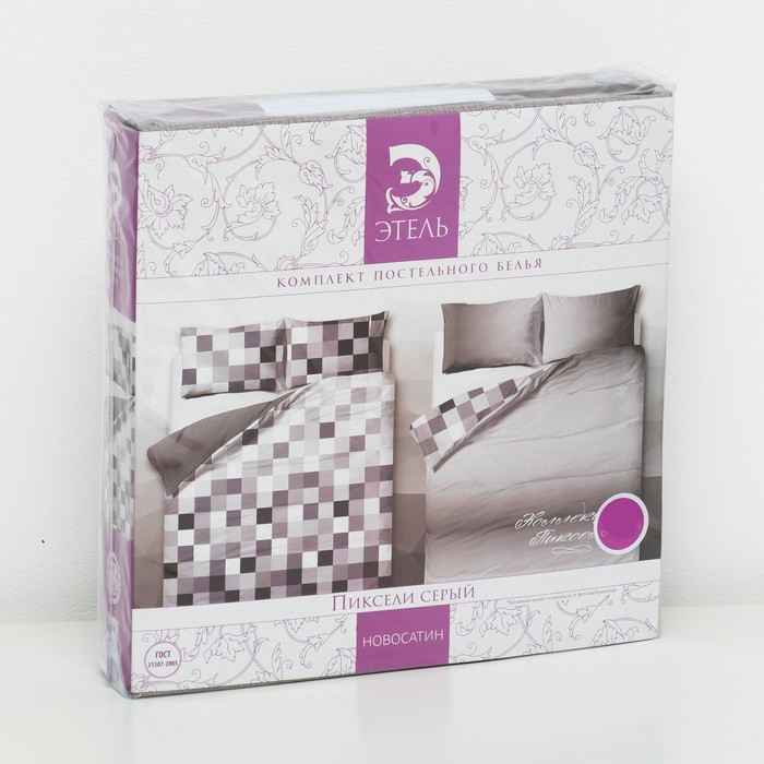 Постельное бельё "Этель" евро Пиксели (серый) 200х220 см, 220х240 см, 50х70 ± 3 см - 2 шт., новосатин