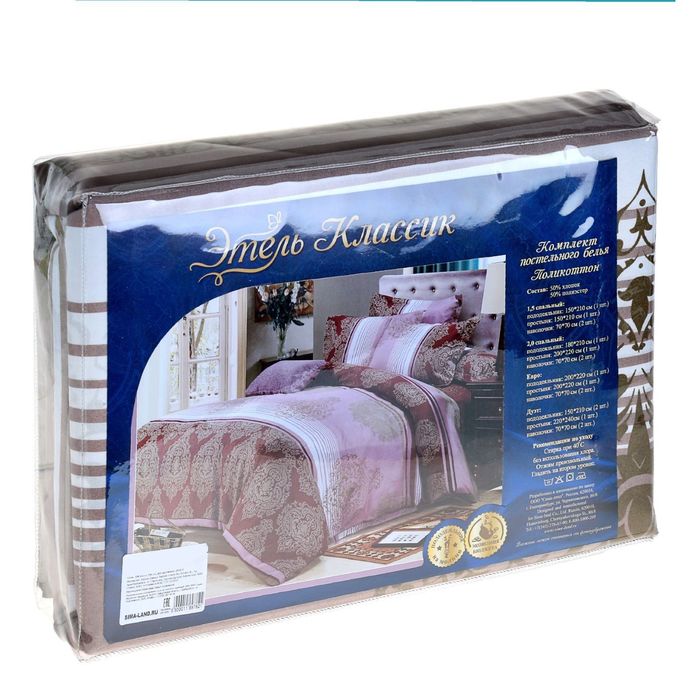 Линейка «Этель Классик» шьётся из приятного на ощупь, гладкого и мягкого поликоттона — ткани, в состав которой входит 50 % хлопка и 50 % полиэстера.