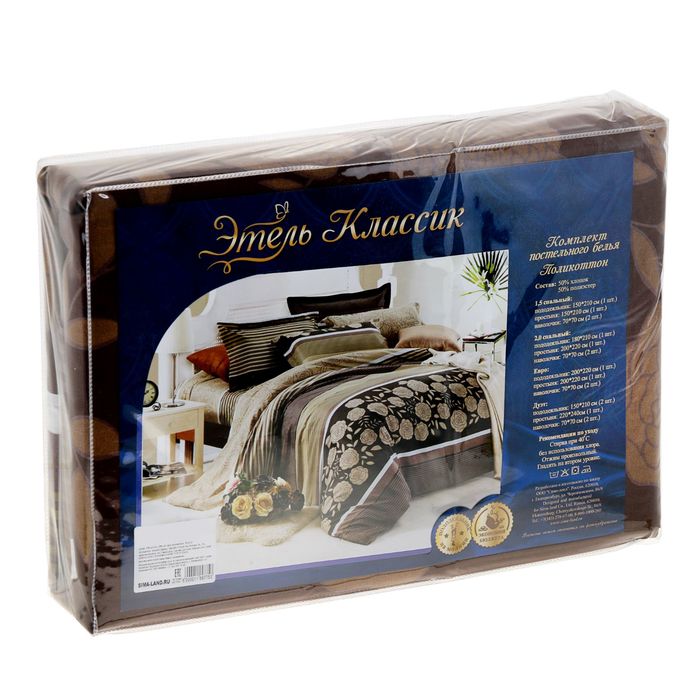 Линейка «Этель Классик» шьётся из приятного на ощупь, гладкого и мягкого поликоттона — ткани, в состав которой входит 50 % хлопка и 50 % полиэстера.