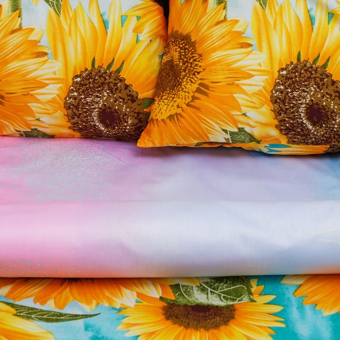 Пошив: наволочки с клапаном, пододеяльник на молнии. Внутренние швы обработаны оверлоком, у простыни скатерный подгиб.Простыня и обратная сторона пододеяльника изготовлена из ткани-компаньона.