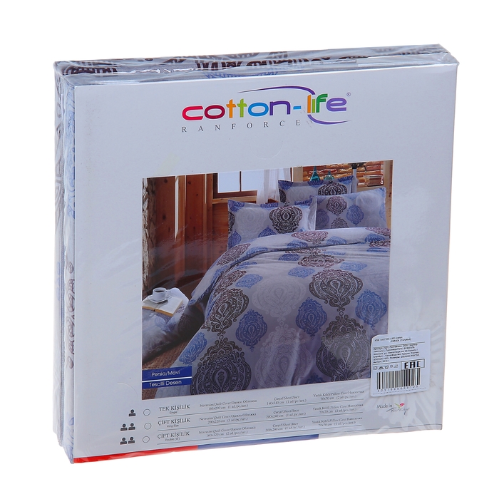 Постельное бельё Евро COTTON LIFE Creton PERSİA 200х220 см, 220х240 см, 70х70 см, цвет голубой