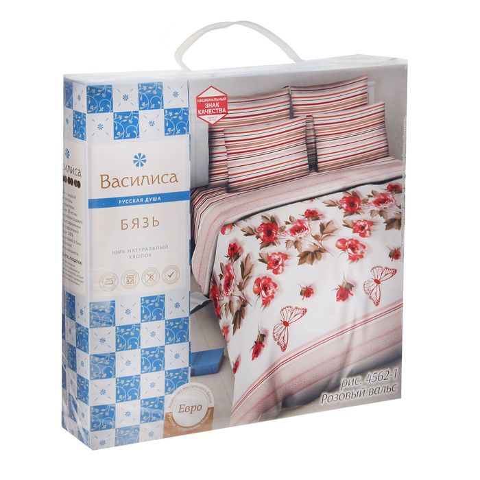 Постельное бельё евро Василиса «Розовый вальс», 215х200см, 200х220см, 70х70см - 2 шт