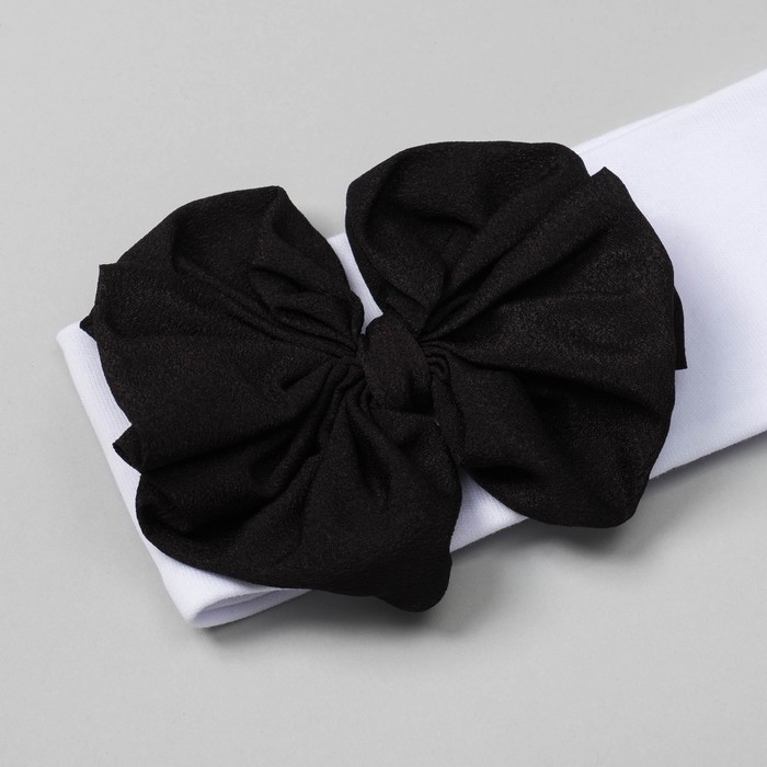 Повязка детская "Бантик" белая с чёрным бантом, р-р 52, 100% хл, интерлок