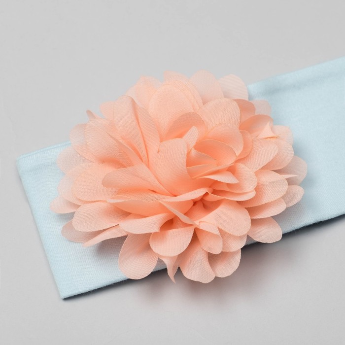 Повязка детская "Цветочек" голубая с персиковым цветком, р-р 52, 100% хл, интерлок