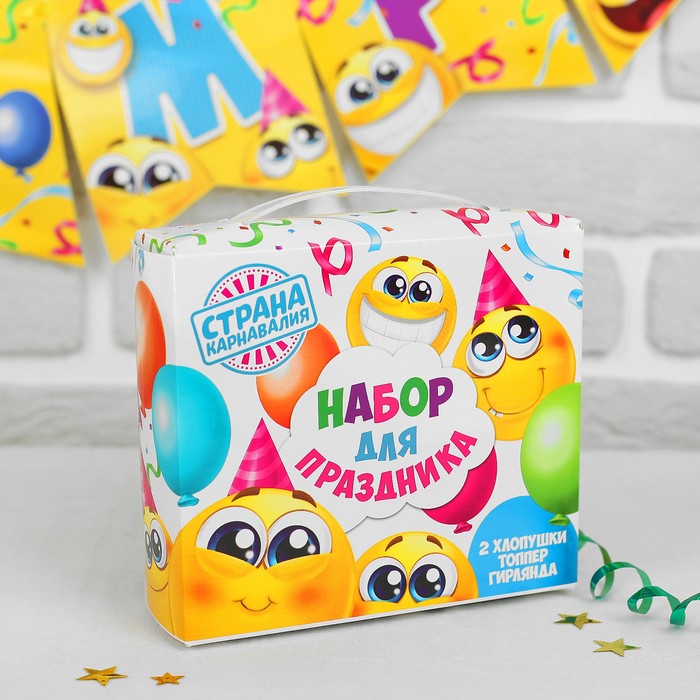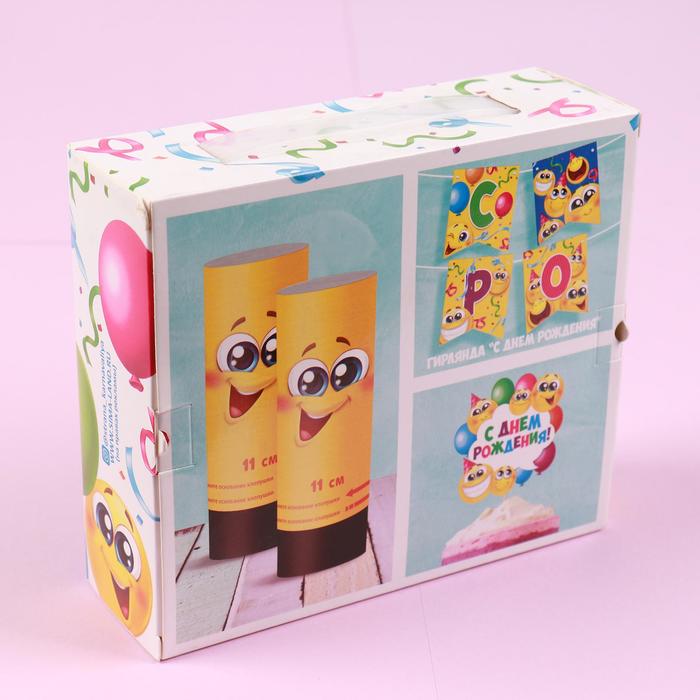 Праздничный набор "С Днём рождения!", смайлы: хлопушка 2 шт., топпер, гирлянда