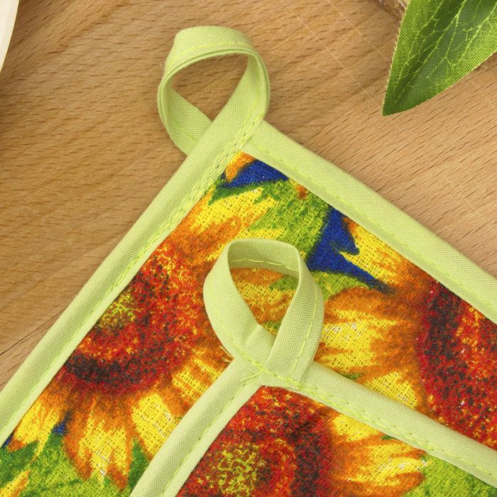 Прихватка 20х20см DomoVita 2шт в пакете, ПОДСОЛНУХИ, хлопок 170 г/м2 рогожка