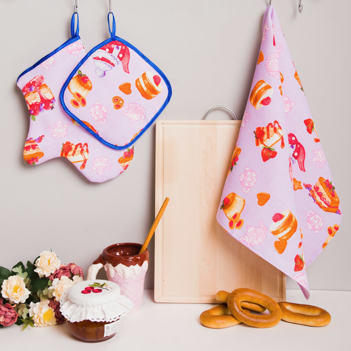 Прихватка "Чайный восторг" 18х18 см рогожка набивная 160 г/м2,хлопок 100%
