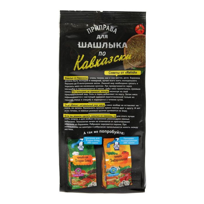 Приправа для Шашлыка по Кавказски 200гр. поможет вам разнообразить обычный вкус известных продуктов или блюд и станет важным элементом на вашей кухне.